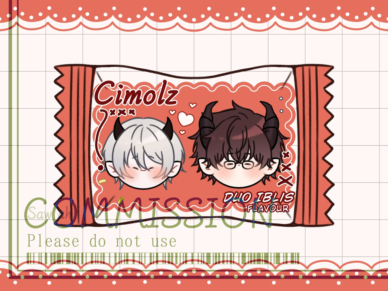 Proses: sketch botak > line > final (colored)